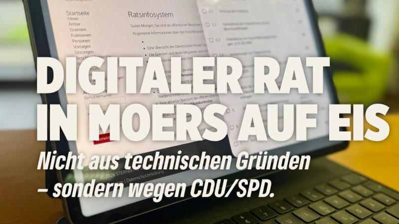 Die Einführung des „Digitalen Rats“ in Moers ist vorerst gescheitert. Nach Ansicht der Grünen liegt das nicht an technischen oder finanziellen Hürden, sondern am politischen Willen der Mehrheitskoalition aus CDU und SPD. Diese habe das Projekt blockiert und damit ein fatales Signal für die gesamte digitale Transformation der Stadtverwaltung gesendet.