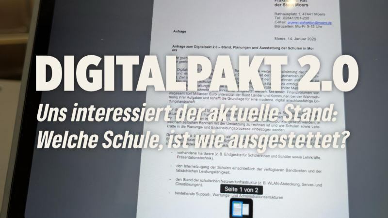 Auch wenn der Digitalpakt 2.0 aktuell noch nicht vollständig finalisiert ist, darf das kein Grund sein, abzuwarten. Gerade jetzt muss die Stadtverwaltung die notwendigen Vorarbeiten leisten, damit Moers sofort handlungsfähig ist, sobald die Mittel freigegeben werden.