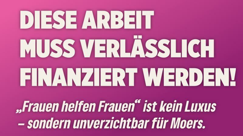 Die Fraktion von Bündnis 90/Die Grünen im Rat der Stadt Moers zeigt sich tief besorgt über den Umgang von CDU und SPD mit dem Zuschussantrag des Vereins „Frauen helfen Frauen e.V.“