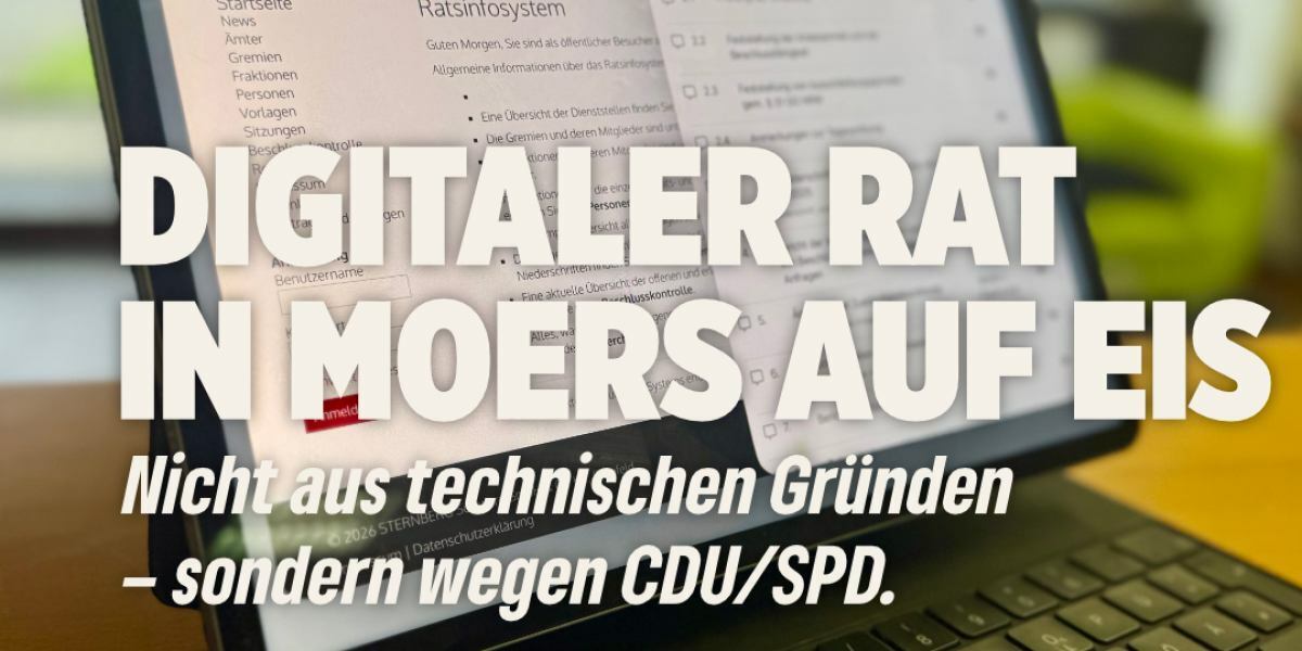 29. Januar 2026 Die Einführung des „Digitalen Rats“ in Moers ist vorerst gescheitert. Nach Ansicht der Grünen liegt das nicht an technischen oder finanziellen Hürden, sondern am politischen Willen der Mehrheitskoalition aus CDU und SPD. Diese habe das Projekt blockiert und damit ein fatales Signal für die gesamte digitale Transformation der Stadtverwaltung gesendet.