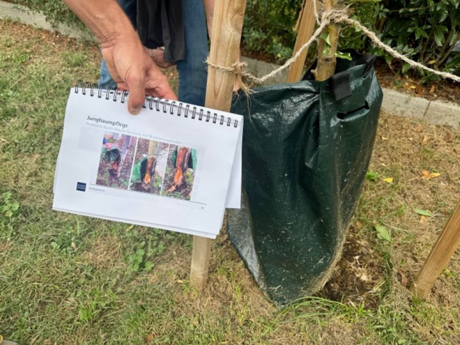 Bild 4: Lehrreiche Erkenntnis am Wegesrand: Bewässerungssäcke helfen nur kurzfristig – bleiben sie zu lange am Baum, drohen Fäulnis und Schimmel. Der Baum wird geschädigt und kann absterben.